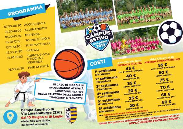 Anche quest'anno siamo lieti di presentare, per il 12° anno di fila, il Campus Estivo Multisportivo di Golosine, dal 10 Giugno al 19 Luglio 2019.
