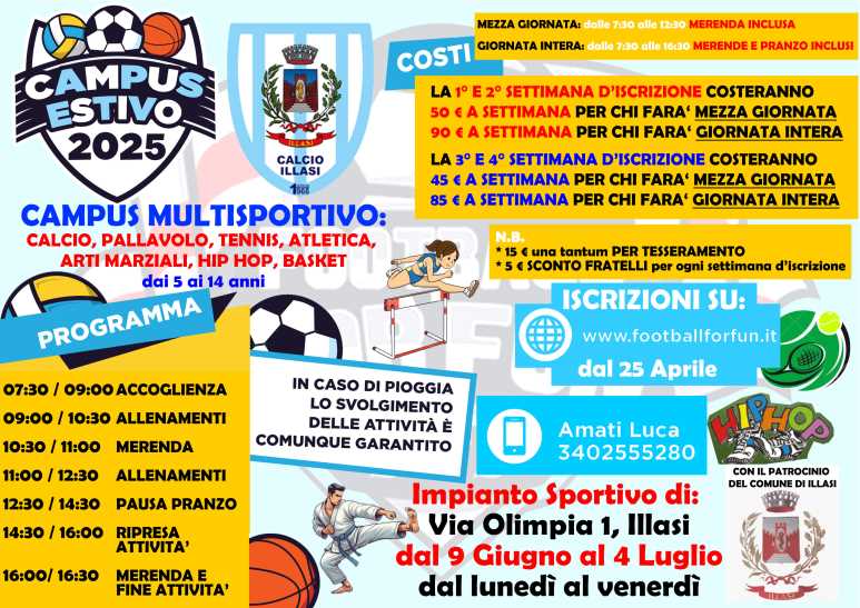 Dopo il successo dell'anno scorso, siamo lieti di presentare per il 3° anno di fila, il Campus Estivo Multisportivo di Illasi, dal 9 Giugno al 4 Luglio 2025!